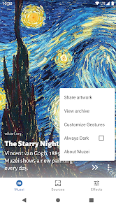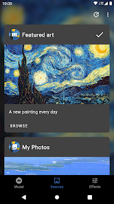 π¨ Muzei Live Wallpaper is a dynamic Android app that revitalizes your home screen with evocative masterpieces from various artists. Developed by Roman Nurik and Ian Lake, Muzei stands out amidst a plethora of live wallpaper apps due to its sophisticated approach to art display, integrating works from famous painters and contemporary digital artists alike. The app offers a seamless experience, combining aesthetic pleasure with user convenience. It's not merely a wallpaper; it's a daily dose of culture and beauty that transforms your device into an art exhibit. For art lovers and those seeking a refreshing twist to their device's interface, Muzei is a delightful option that champions customization and visual elegance. Experience an ever-changing gallery that ensures your phone always feels fresh and inspiring. Join the artistic revolution and embellish your screen with Muzei Live Wallpaper! πΌοΈβ¨