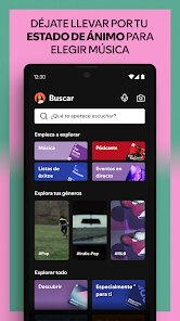 - 🔍 Búsqueda avanzada: la aplicación permite búsquedas rápidas y precisas de cualquier canción, artista o álbum. Además, puedes buscar por estado de ánimo o actividad, como "música para entrenar", para obtener resultados personalizados.