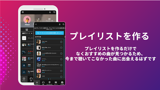 🔄プレイリスト作成: お気に入りの曲を集めて、自分だけのプレイリストを簡単に作成できます。