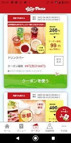 🌟豊富なクーポン: ジョリーパスタの特定メニューやドリンクなど、様々な割引クーポンが定期的に更新されます。