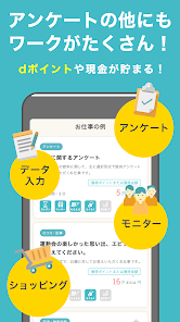 📱 dジョブスマホワーク-アンケートでdポイント&お小遣い稼ぎ!は、NTT DOCOMOが提供するアプリで、スマホで簡単にアンケートに回答するだけでdポイントを貯めることができるサービスです。その操作は非常に直感的で、どんなユーザーでもスムーズに利用できます👌✨。デザインもシンプルで見やすく、日々の通勤時間やちょっとした空き時間を有効活用するのに最適です🚉⏳。また、信頼のある大手企業が提供しているという安心感もこのアプリの大きな魅力❤️。多くの同様のアプリが存在する中で、「dジョブスマホワーク-アンケートでdポイント&お小遣い稼ぎ!」は、その信頼性と操作性から特におすすめします💯。dポイントを貯めながら、賢くお小遣いを稼ぎたい方は、ぜひこのアプリをダウンロードしてください📲。