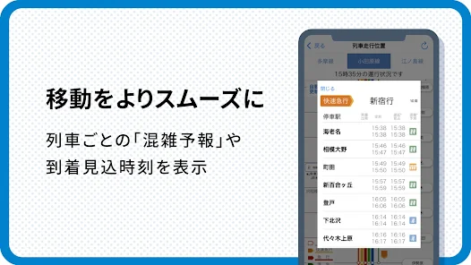 🕒 リアルタイム運行情報: 小田急線の運行状況をリアルタイムで把握でき、遅延や運休の情報もすぐに確認できます。